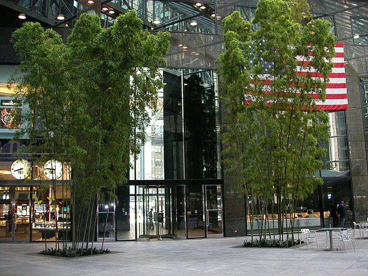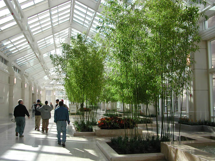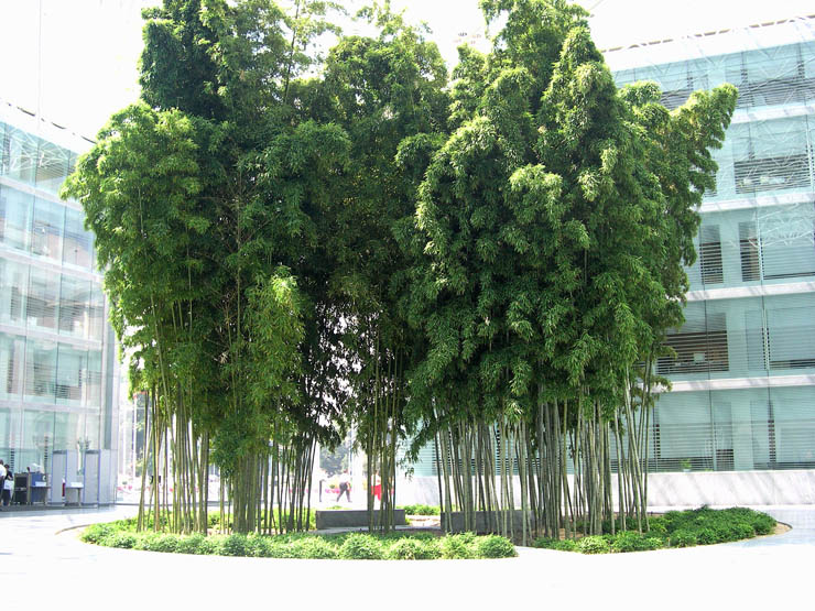 Diversity of scale and size, durability, low maintenance, and a small footprint in relation to imposing vertical impact - these are some of bamboo’s qualities that have warranted its use in larger scale commercial planting, such as residential complexes, shopping malls, airports and office buildings. |